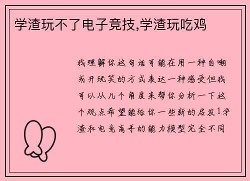 小时玩的电子竞技—好玩的电子竞技
